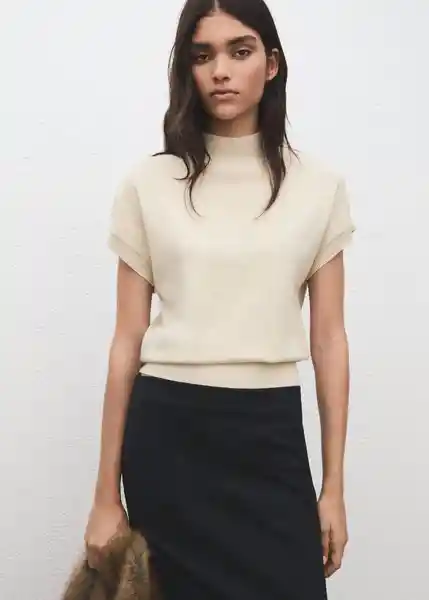 Cuello Perkins Diseño Entallado Manga Corta Sin Cierre Tejido de Lúrex Tejido de Punto Fino - 27061262_Or.