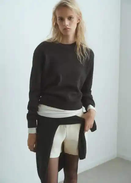 Cuello Redondo Diseño Recto Manga Larga Sin Cierre Tejido de Punto Tejido Mezcla de Algodón y Lana - 17005823_96.