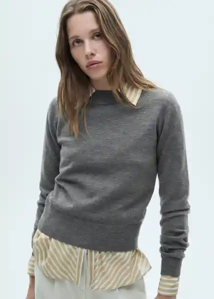 Cuello Redondo, Diseño Recto, Manga Larga, Sin Cierre, Tejido de Punto, Tejido Mezcla de Lana - 77036723_96.