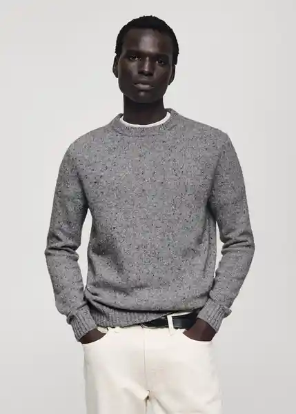 Cuello Redondo, el Modelo Mide 185 cm y Lleva Una Talla M, Manga Larga, Regular Fit, Tejido Jaspeado, Tejido Mezcla de Lana, Terminaciones de Canalé en Cuello, Manga y Bajo - 77007941_94.