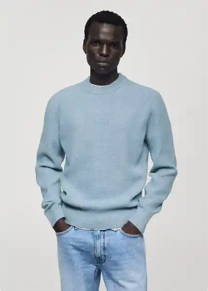 Cuello Redondo, el Modelo Mide 185 cm y Lleva Una Talla M, Manga Larga, Materiales Reciclados, Regular Fit, Tejido de Punto Con Estructura, Terminaciones en Canalé - 77007950_50.