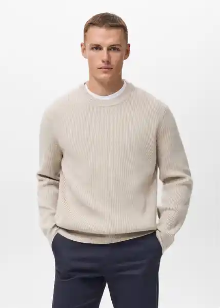 Bajo Elástico Cuello Redondo el Color Arena es Exclusivo Online el Modelo Mide 190 cm y Lleva Una Talla M Manga Larga Con Puños Elásticos Punto de Canalé Silueta Recta Tejido Mezcla de Lana - 17007900_07.