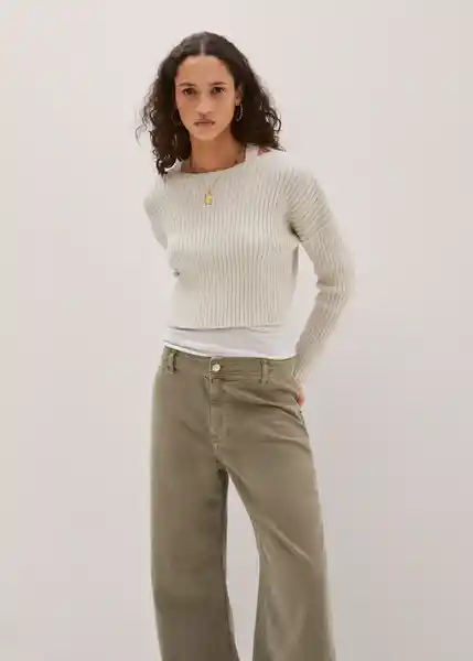 Cuello Barco Diseño Crop Diseño Recto Manga Larga Sin Cierre Tejido de Punto de Canalé Tejido Mezcla de Algodón - 47087116_05.