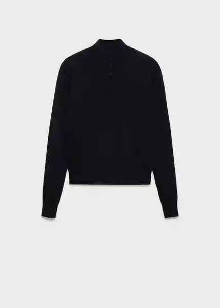Cierre de Botones en el Cuello, Cuello Perkins, Diseño Recto, Manga Larga, Tejido de Punto Fino, Terminaciones Elásticas en Canalé - 77058268_99.