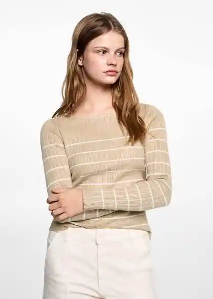 Cuello Redondo Diseño de Rayas Manga Larga Slim Fit Tejido de Punto de Canalé - 87021519_07.
