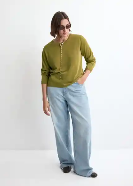 Cuello Redondo Diseño Recto Disponible Plus Manga Larga Sin Cierre Tejido de Punto Fino Tejido Mezcla Lyocell - 27015822_43.