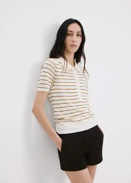 Cierre Delantero Con Botones Cuello Polo Diseño Recto Disponible Plus Manga Corta Tejido de Punto Fino Tejido Mezcla Lyocell - 27035821_05.