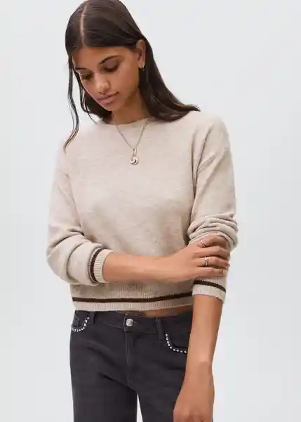 Cuello Redondo Detalle Rayas Diseño Recto Estampado Tigre Manga Larga Tejido de Punto - 17018269_85.