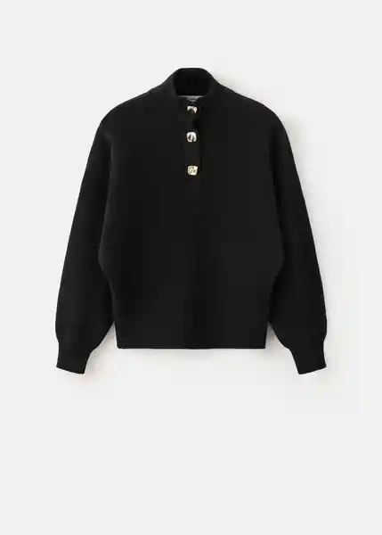 Botones Efecto Joya Cierre de Botones en el Cuello Cuello Alto Diseño Recto el Color Negro es Exclusivo Online Manga Larga Relaxed Fit Tejido de Punto Fino - 27011312_99.