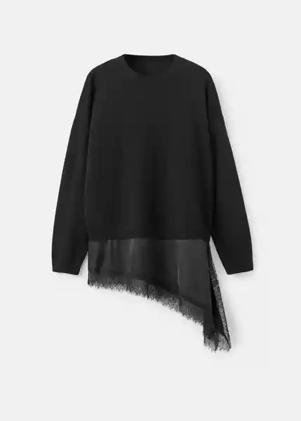 Cuello Redondo Diseño Recto Manga Larga Tejido de Punto Fino Bajo Asimétrico Encaje - 27071534_99.