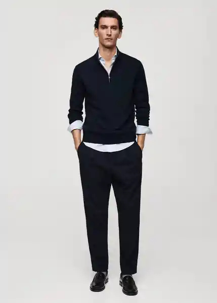 100% Lana Cuello Perkins Con Cierre de Cremallera el Color Beige es Exclusivo Online el Modelo Mide 185 cm y Lleva Una Talla M Tejido de Punto Fino Terminaciones de Canalé - 87000617_56.
