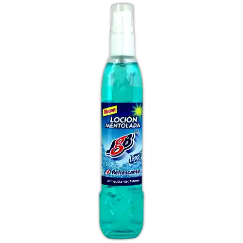 Locion antiséptica refrescante Jgb, de uso externo. Sirve para refrescar, como calmante externo, para evitar mareos, calmar el dolor de cabeza y como relajante.