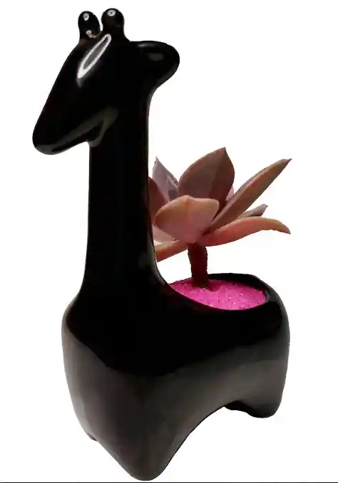 Suculenta (tono natural), en matera ceramica de 8cm x 5cm, incluye sustrato 100% organico y arena decorativa. Altura total 15cm aproximadamente (la altura varia segun la especie).