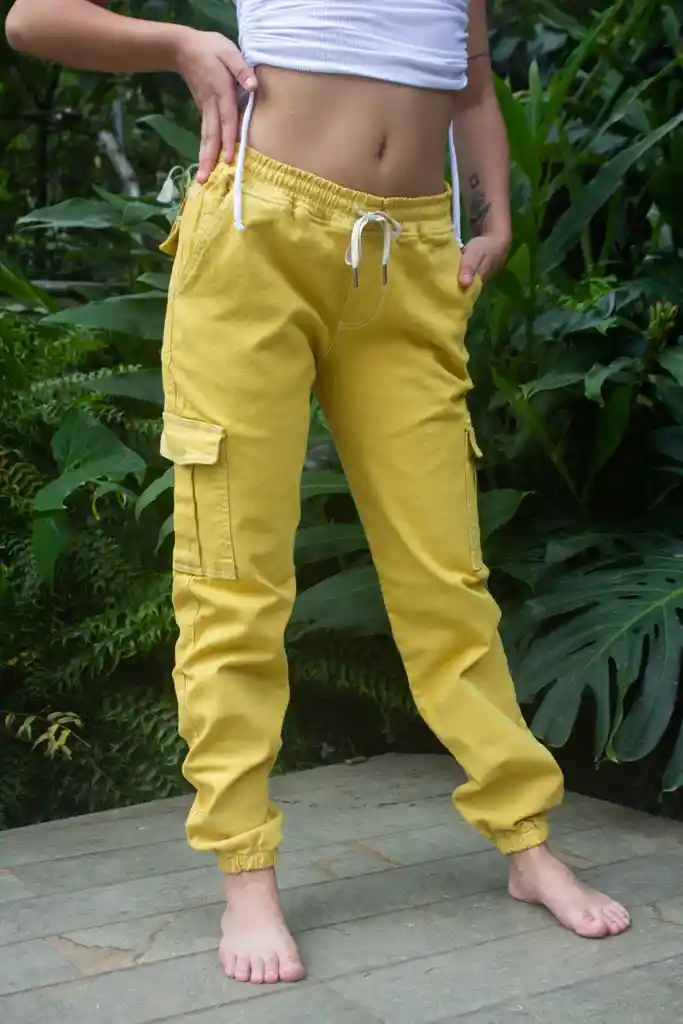 Jean jogger color mostaza para mujer, perfecto para un look casual y cómodo. Su ajuste es relajado y moderno, ideal para combinar con diversas prendas y crear outfits versátiles y llenos de estilo.