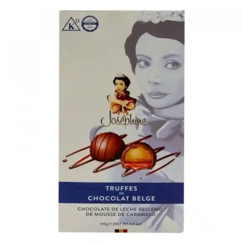Trufas de Cololate Josephine 149gr-Blanco Chocolate de leche relleno de mousse de caramelo. Ingredientes: Azucar, manteca de cacao, grasas vegetales, leche entera, cacao masa, jarabe de glucosa, vainilla natural, agua, mantequilla. Registro Sanitario NSA-000835-2016 Medidas en Centimetros: 20x5x10