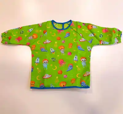 Delantal en Tela Antifluido Para Bebés, Niñas y Niños Con Diseño Unisex de Animales en el Espacio, Perfecta Compañía Para el Aprendizaje, Estimulación, Diversión y Hora de Comer.