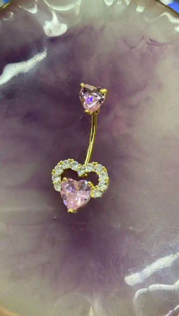 Joya en acero quirurgico para el ombligo de color dorado con diseño de corazones