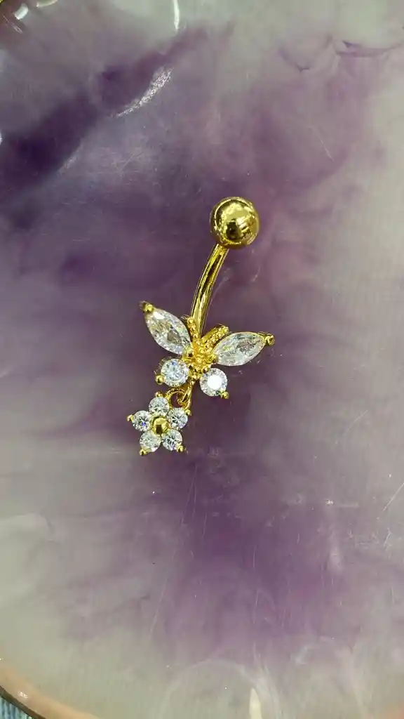 Joya en acero quirurgico para el ombligo color dorado con diseño de mariposa colgante