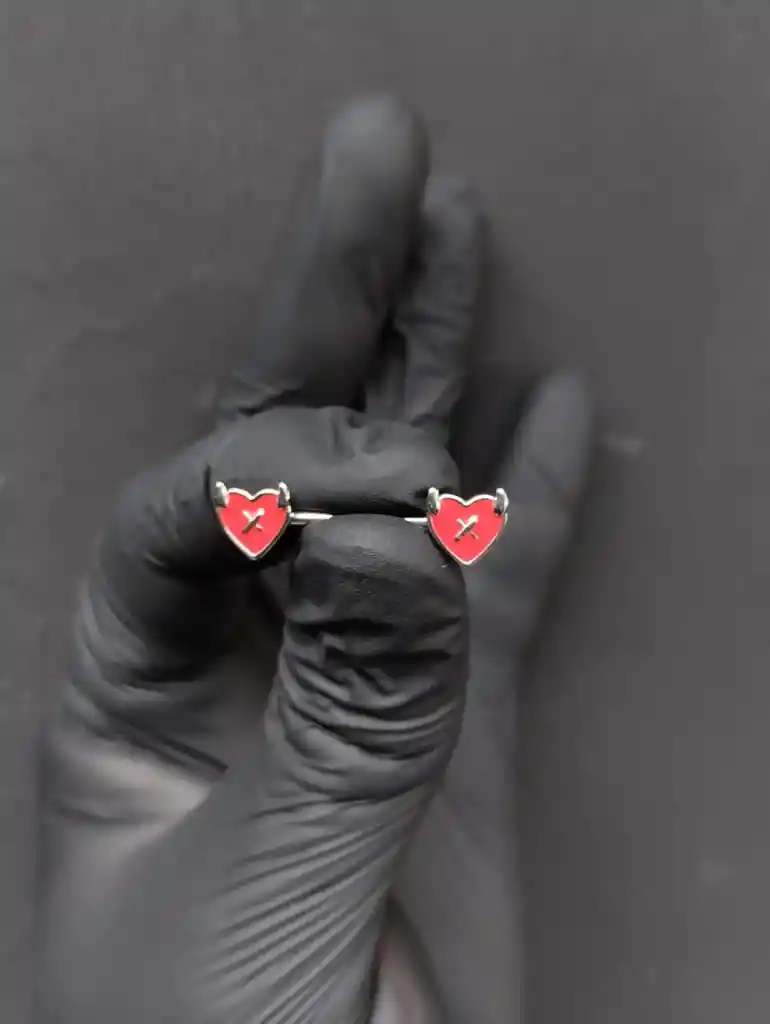 Joya para pezon por 2 unidades en acero quirurgico con diseño de corazon