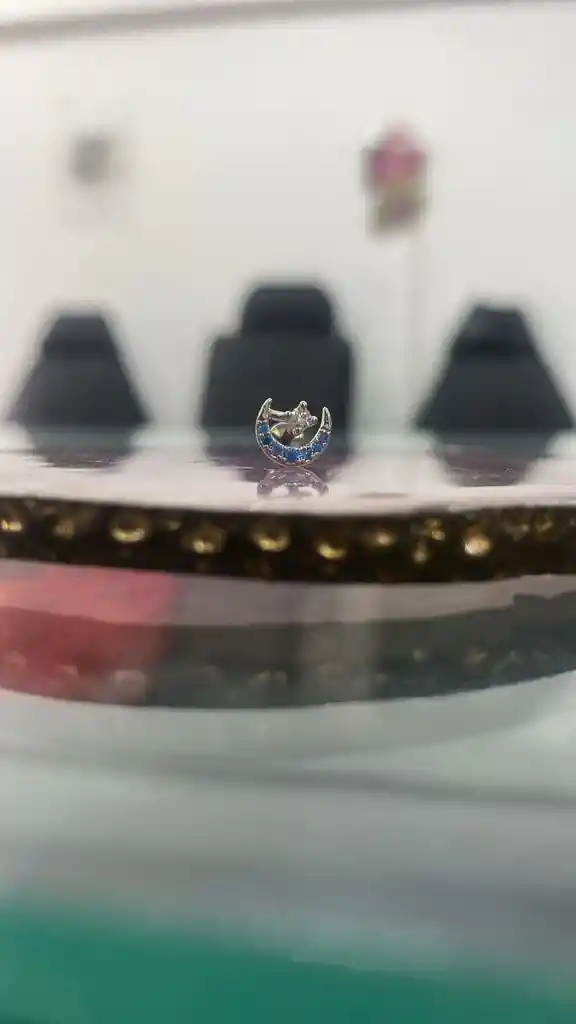 Joya de titanio plateada con diseño de luna 16g 10mm
