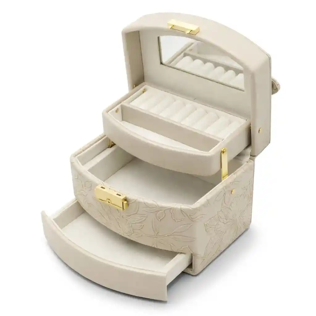 Joyero Alhajero Organizador – Elegancia y Seguridad para tus Joyas Organiza y protege tus accesorios más valiosos con este joyero compacto de tres niveles. Su diseño funcional incluye secciones especializadas y dos cajones inferiores, todo recubierto en terciopelo táctil para evitar arañazos. Con un acabado exterior en PU de alta calidad y cierre con llave, es el complemento ideal para mantener el orden con un toque de sofisticación. Características Principales Diseño de Tres Niveles: Sección superior compartimentada más dos cajones para una organización total. Protección Anti-Arañazos: Interior revestido en terciopelo suave que cuida la integridad de tus joyas. Seguridad con Llave: Incluye cerradura frontal para resguardar tus objetos más preciados. Espejo Integrado: Facilita la elección y colocación de tus accesorios en el momento. Material Premium: Exterior en poliuretano (PU) 100% resistente y fácil de limpiar. Espacios Especializados: Compartimentos diseñados para anillos, pendientes, pulseras y collares. Especificaciones Técnicas Modelo: SL65-D15454. Dimensiones: 15 cm (Ancho) x 12 cm (Alto) x 12 cm (Profundo). Material Exterior: 100% PU (Cuero sintético). Material Interior: Forro de terciopelo táctil. Tipo de Accesorio: Organizador de joyas. Funciones y Detalles Cajones Deslizables: Acceso rápido a las secciones inferiores sin desordenar la parte superior. Portabilidad: Tamaño compacto ideal para tocadores o para llevar en maletas de viaje. Distribución Inteligente: Evita que los collares se enreden y que los pendientes se pierdan. Contenido del Paquete 1 x Joyero Alhajero Organizador. 1 x Llave de seguridad. Garantía Este producto cuenta con 30 días de garantía exclusivamente por defectos de fabricación o fallas en el sistema de cierre. Política de Retracto Aplica por 5 días hábiles tras la entrega. El producto debe devolverse sin señales de uso, con su llave y en el empaque original en perfecto estado. Notas Importantes Mantenimiento: Limpiar el exterior solo con un paño ligeramente húmedo; evitar productos químicos fuertes. Cuidado: No sobrecargar los cajones para asegurar un deslizamiento suave y evitar daños en las bisagras. Evidencia: Se recomienda grabar un video del desempaque (unboxing) para validar cualquier reclamación por daños estéticos detectados al recibir.