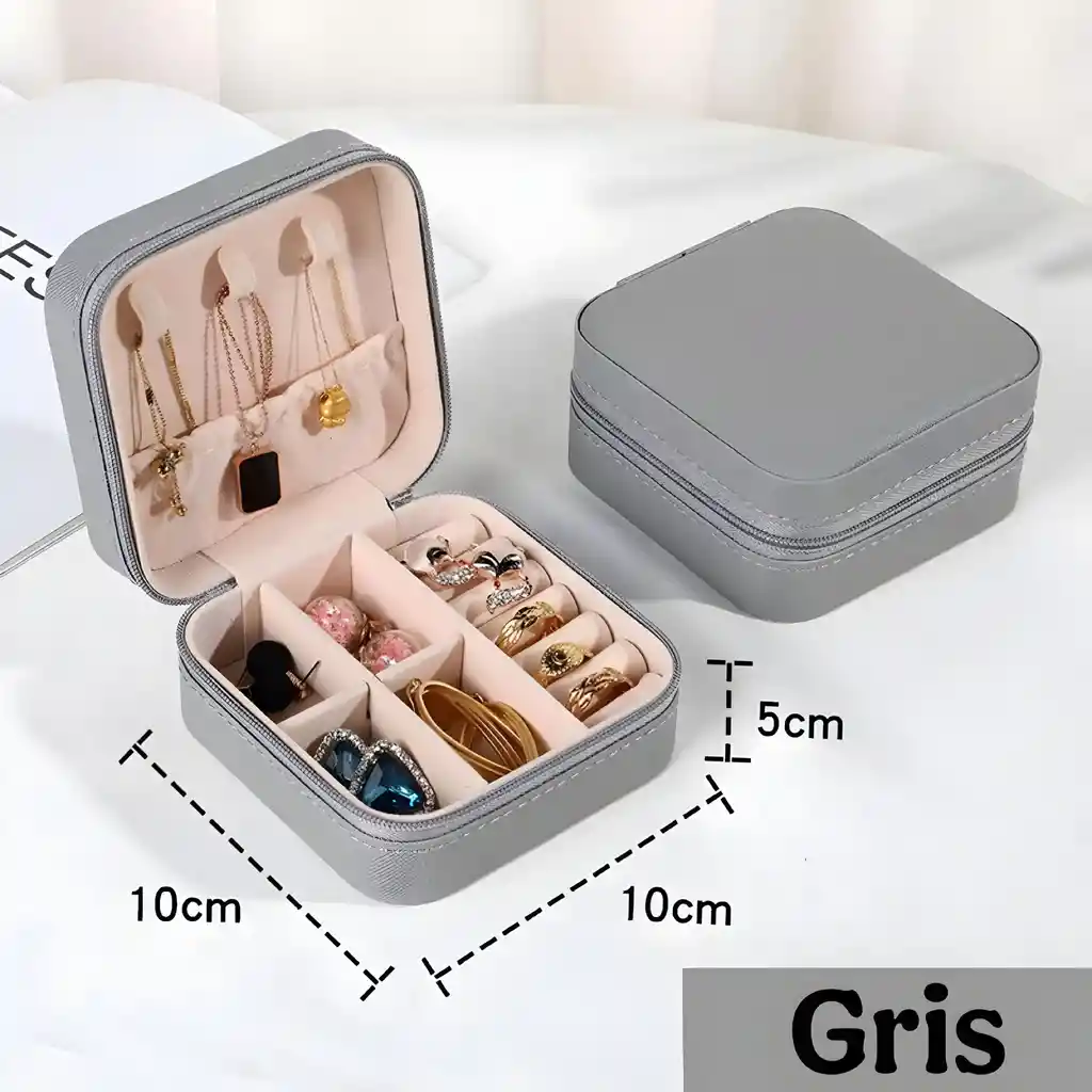 💎 Joyero Compacto Portátil con Cierre y Cerradura Ideal para joyas pequeñas y llevar a todas partes. 👜 Características Principales: Material exterior: Cuero sintético Interior: Franela suave, protege contra arañazos y enredos Compartimentos: 13 en total Cajones: 1 funcional Capacidad: Aproximadamente 25 joyas Con cierre y cerradura para mayor seguridad 📏 Tamaño: 10 cm × 10 cm × 5 cm 🎁 Ideal para: Aretes, candongas, topitos, minihoops, collares y adornos pequeños. Perfecto para la mesa de noche, bolso o equipaje gracias a su diseño compacto y elegante.