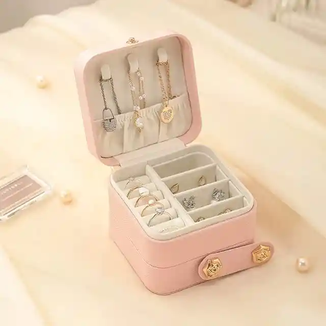 Ligero y cómodo, con múltiples compartimentos, puedes poner aretes grandes, pulseras, anillos y collares. Mantendras tus joyas limpias y ordenadas, y es conveniente para que las encuentres y lleves de viaje en tu bolso con 3 compartimietos y broches de seguridad color: Palo De Rosa 4 cm ancho 3 cm alto 3,5 cm profundida