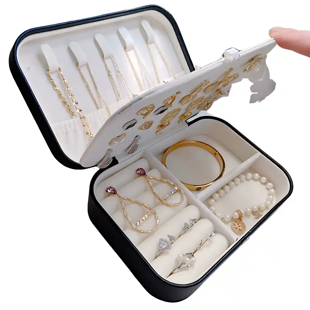 Joyero Organizador de Accesorios de Viaje – Estuche Elegante para Joyas Elegancia y organización en un solo accesorio Mantén tus joyas organizadas y protegidas con este elegante Joyero Organizador de Accesorios para Viaje. Con 15 compartimientos, es ideal para almacenar anillos, pulseras, aretes y otros accesorios pequeños. Su diseño compacto y funcional lo convierte en el compañero perfecto para tus viajes o para mantener tus joyas siempre a mano y en perfecto estado. Características Destacadas: • 15 Compartimientos: Perfecto para organizar anillos, pulseras, aretes, cadenas y otros pequeños accesorios. • Material de Alta Calidad: Fabricado en piel sintética resistente, proporcionando un acabado elegante y duradero. • Botón de Cierre: Diseño seguro con cierre de botón para mantener tus joyas protegidas durante el transporte. • Diseño Compacto y Práctico: Ideal para llevar en el bolso o maletín, sin ocupar mucho espacio. • Estilo Elegante: Un accesorio sofisticado que complementa tu estilo mientras mantienes todo perfectamente organizado. Ficha Técnica: • Material: Piel sintética de alta calidad. • Medidas (Cerrado): 11 x 16 x 5 cm. • Medidas (Abierto): 22 x 16 cm. • Compartimientos: 15 compartimientos para una mejor organización. • Tipo de Cierre: Botón de cierre para mayor seguridad. • Color: Disponible en varios colores (dependiendo de la disponibilidad). • Ideal para: Anillos, pulseras, aretes, cadenas y otros accesorios pequeños. Un accesorio imprescindible para tus viajes o uso diario Este joyero no solo es funcional, sino que también añade un toque de sofisticación y estilo a tu rutina diaria. Organiza tus joyas con elegancia y manténlas siempre en su lugar, protegidas y listas para usar. ¡El regalo perfecto para ti o para esa persona especial que aprecia el buen gusto y la organización!