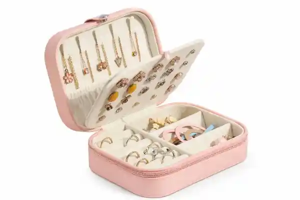 Hermoso joyero con un diseño simple y compacto de aspecto elegante para organizar y almacenar aretes, collares, anillos, etc. Su tamaño es ideal para transportar todos tus accesorios de manera segura evitando enredos y daños. La tapa y la base son sólidas, bien construidas y resistentes, mantienen todas sus joyas queridas bien organizadas con este estuche. Un gran regalo para tu madre, novia, esposa, hija, compañeros de clase, colega, amigos, etc. también el mejor regalo de los días de San Valentín, regalo de cumpleaños, regalo del Día de la madre, regalo de Navidad para ella. Material: cuero sintético - franela Medidas aproximadas: 16cm5cm11cm