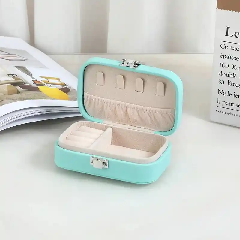 Mantén tus joyas siempre a la mano y perfectamente organizadas en cada viaje Este joyero portátil evita que tus accesorios se pierdan o se dañen, gracias a su diseño compacto y seguro. Su tamaño lo hace ideal para llevar en tu bolso de mano y además es un excelente regalo por su estilo elegante y moderno. Características Material: Cuero PU de alta calidad, resistente y liviano Dimensiones: 12 cm x 7,5 cm x 4 cm Interior dividido: ganchos para collares, ranuras para anillos, compartimentos para pulseras o pendientes Peso ligero: perfecto para viajes o uso diario Cierre seguro: mantiene el contenido protegido durante el transporte Colores disponibles: morado, azul, gris, rosado, verde, blanco, amarillo (envío según disponibilidad) Diseño: acabado elegante y minimalista Contenido del paquete: 1 joyero organizador portátil El accesorio ideal para mujeres prácticas y con estilo, que desean cuidar sus joyas en todo momento.