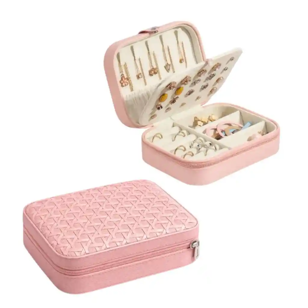 JOYERO NUEVO DISEÑO CON TEXTURA. Hecho sintetico y franela, antidesgaste, sin deformación, sin decoloración, fácil de usa con cremallera. Forro interior suave: el forro interior es delicado y suave, más suave y cómodo para cuidar tus joyas preciosas, lo que puede evitar arañazos y daños. Medidas 16cmx11cmx5cm