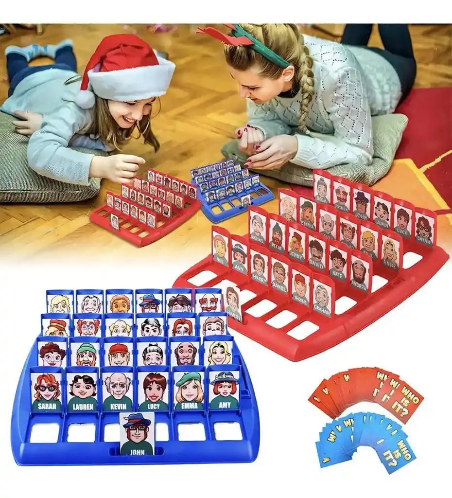 Este es el clásico juego de mesa de deducción y lógica, conocido popularmente como "¿Quién es quién?" o "Adivina Quién". Es un juego diseñado para dos jugadores donde el objetivo es ser el primero en identificar el personaje secreto del oponente. Consiste Cada jugador elige una tarjeta con un personaje al azar de un mazo y la coloca en el soporte frontal de su tablero. El tablero contiene 24 caras diferentes con nombres específicos. Preguntas de "Sí" o "No": Los jugadores se turnan para hacer preguntas sobre las características físicas de los personajes. Por ejemplo: "¿Tu personaje tiene sombrero?" o "¿Tiene los ojos azules?". Descarte: Dependiendo de la respuesta, el jugador baja las pestañas de los personajes que no coinciden con la descripción, reduciendo las opciones hasta que solo queda uno. Adivinar: Cuando un jugador está seguro de quién es el personaje secreto del rival, puede usar su turno para decir el nombre. Si acierta, gana si falla, pierde la partida. Es un juego excelente para desarrollar el pensamiento crítico y la capacidad de clasificación en niños, aunque sigue siendo un pasatiempo entretenido para todas las edades por su rapidez y sencillez.
