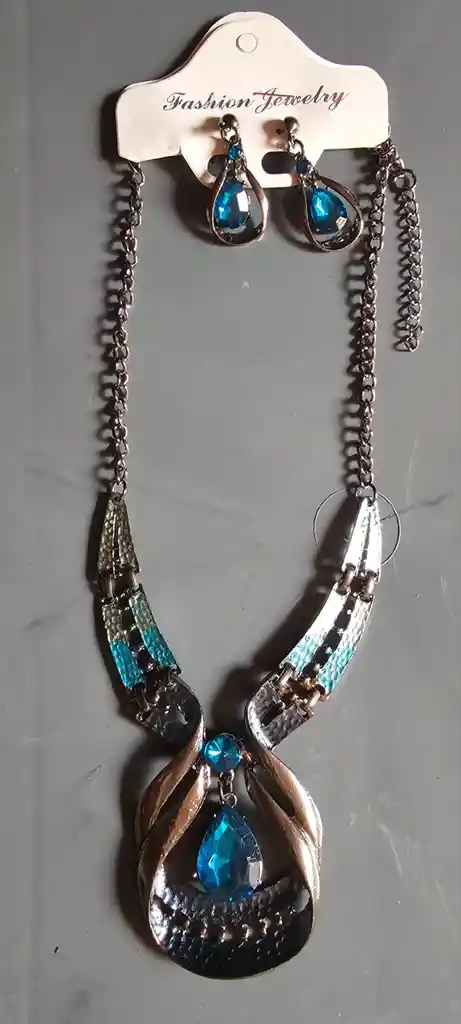 juego aretes y collar piedra gota azul regalo para CUALQUIER OCASION AGUINALDO NAVIDAD