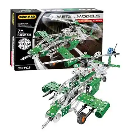 Juguetes Constructores, bloques Constructor de metal Helicóptero El constructor de metal es un verdadero clásico de los constructores. Con estos constructores jugaban los niños del siglo pasado, enamorados de la construcción. Algunos de ellos se convirtieron en ingenieros talentosos. El constructor de metal está destinado a niños curiosos que observan el trabajo de los adultos y quieren desmontar o montar algo. Al conectar piezas con tornillos, tuercas y una llave, no solo se desarrolla la motricidad fina, se desarrolla la perseverancia, sino también la imaginación y el pensamiento. Queremos señalar que este constructor de metal no es sólo para niños. La práctica demuestra que a las niñas también les interesa la construcción y trabajar con un destornillador, no menos que a los niños. Elija el constructor que más le guste y esta interesante actividad hará las delicias no solo de su hijo, sino también de usted. Ayuda a desarrollar la imaginación, la creatividad y las habilidades de construcción. El set contiene 360 piezas: Placas y juntas metálicas. Pernos y arandelas Elementos de plástico, p.e. ruedas Destornillador la clave Instrucción Dimensiones caja: 30x40x6 cm Edad recomendada a partir de 7 años.