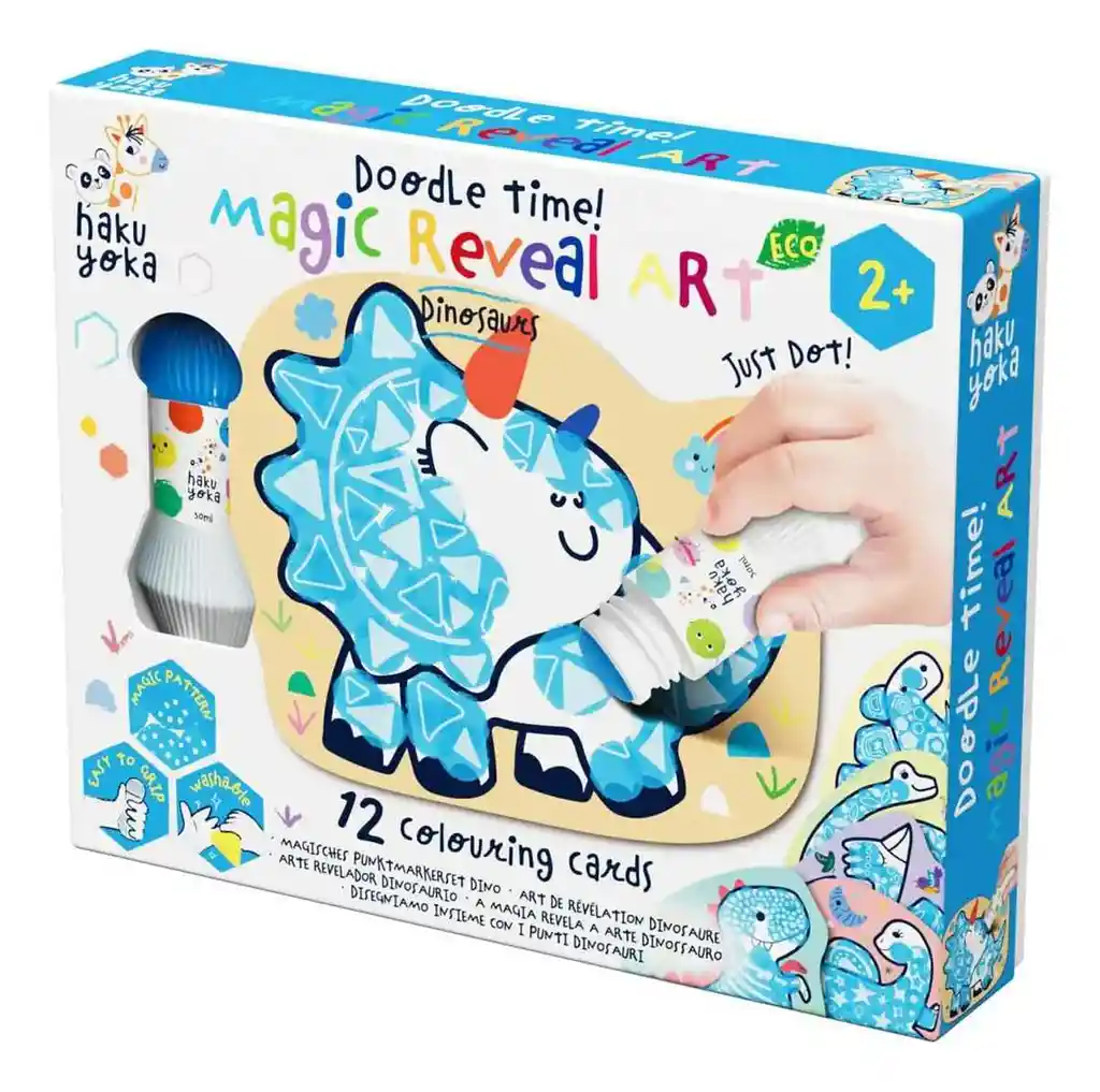 Empaque de regalo sin costo adicional, escríbenos al finalizar la compra. 3 años + Este set de arte mágico invita a los niños a descubrir dibujos ocultos con cada punto que trazan. Al usar el marcador especial, los patrones aparecen de forma inmediata, lo que mantiene la atención y despierta la curiosidad desde el primer contacto. La experiencia resulta clara, visual y muy estimulante para manos pequeñas. Incluye 12 tarjetas ilustradas con dinosaurios y un marcador de puntos fácil de agarrar. Favorece la coordinación mano ojo, la exploración sensorial y el juego creativo sin complicaciones. Ideal para actividades tranquilas en casa o para llevar, pensado para niños desde los 2 años. Tamaño: 23x 19x 4cm