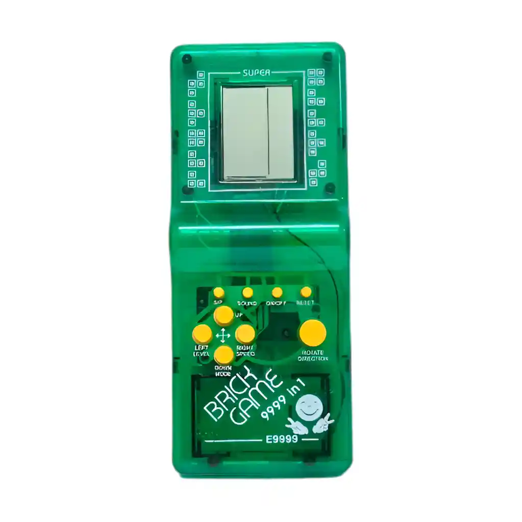Videojuego portátil en forma de control estilo Game Pad, ideal para los fans de los juegos clásicos. Cuenta con una pantalla integrada y botones de fácil acceso para jugar, pausar, reiniciar, controlar el sonido y rotar las piezas según el juego. Su diseño ergonómico ofrece un agarre cómodo para horas de entretenimiento. Perfecto para llevar a cualquier lugar y disfrutar de múltiples juegos retro en un solo dispositivo. Ficha Técnica: Dimensiones del empaque: 18 cm x 7 cm x 1.5 cm Funcionamiento : 2 Baterías AA Material : Plástico ABS Edad recomendada + 3 Años Certificado de conformidad: SL-CS-210044 Referencia: JM-1358 E9999-2 ** _Para defectos de fábrica o retractos: \_Por favor revise el producto apenas lo reciba y antes de usarlo. No aplican ley de retracto o defectos de fábrica luego de usar el producto. Se manejan máximo 5 días para reportar defectos de fábrica (por ejemplo, producto funciona mal, piezas faltantes, rotas, etc). Para hacer efectiva la devolución el producto debe devolverse con el empaque original, el cual debe estar en buen estado, incluir todos los documentos y las partes completas y sin daños.