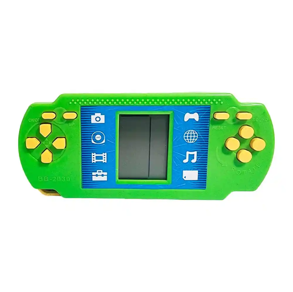 Videojuego portátil en forma de control estilo Game Pad, ideal para los fans de los juegos clásicos. Cuenta con una pantalla integrada y botones de fácil acceso para jugar, pausar, reiniciar, controlar el sonido y rotar las piezas según el juego. Su diseño ergonómico ofrece un agarre cómodo para horas de entretenimiento. Perfecto para llevar a cualquier lugar y disfrutar de múltiples juegos retro en un solo dispositivo. Ficha Técnica: Dimensiones : 15 cm x 6 cm x 2 cm Funcionamiento : 2 Baterías AA Material : Plástico ABS Edad recomendada + 3 Años Certificado de conformidad: SL-CS-210044 Referencia: 2030-1 JM-1372 ** _Para defectos de fábrica o retractos: \_Por favor revise el producto apenas lo reciba y antes de usarlo. No aplican ley de retracto o defectos de fábrica luego de usar el producto. Se manejan máximo 5 días para reportar defectos de fábrica (por ejemplo, producto funciona mal, piezas faltantes, rotas, etc). Para hacer efectiva la devolución el producto debe devolverse con el empaque original, el cual debe estar en buen estado, incluir todos los documentos y las partes completas y sin daños.