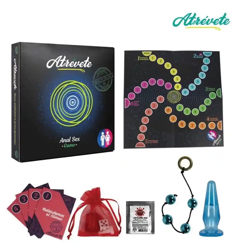 El sexo anal es una de las prácticas sexuales que suele producir mayor placer y diversión durante las relaciones con tu pareja, pero si no se practica correctamente, ésta puede ser dolorosa. Si estás pensando en practicar sexo anal, te recomendamos ATRÉVETE, el manual para principiantes. Aprende jugando el juego del sexo anal que te transportará por 6 caminos diferentes, y te enseñará los pasos a seguir si lo que quieres es aumentar la sensación de placer… Incluye un tablero manual de sexo anal 1 ficha 1 dado 1 cinta de amarre 1 lubricante Anal plug anal de silicona 1 bola analTablero 36 tarjetas de pruebas