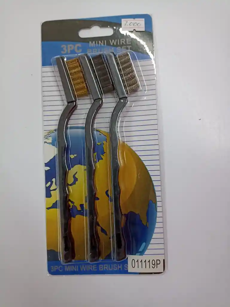 3 cepillos de los cuales uno es acerado, uno de bronce y uno de plástico.