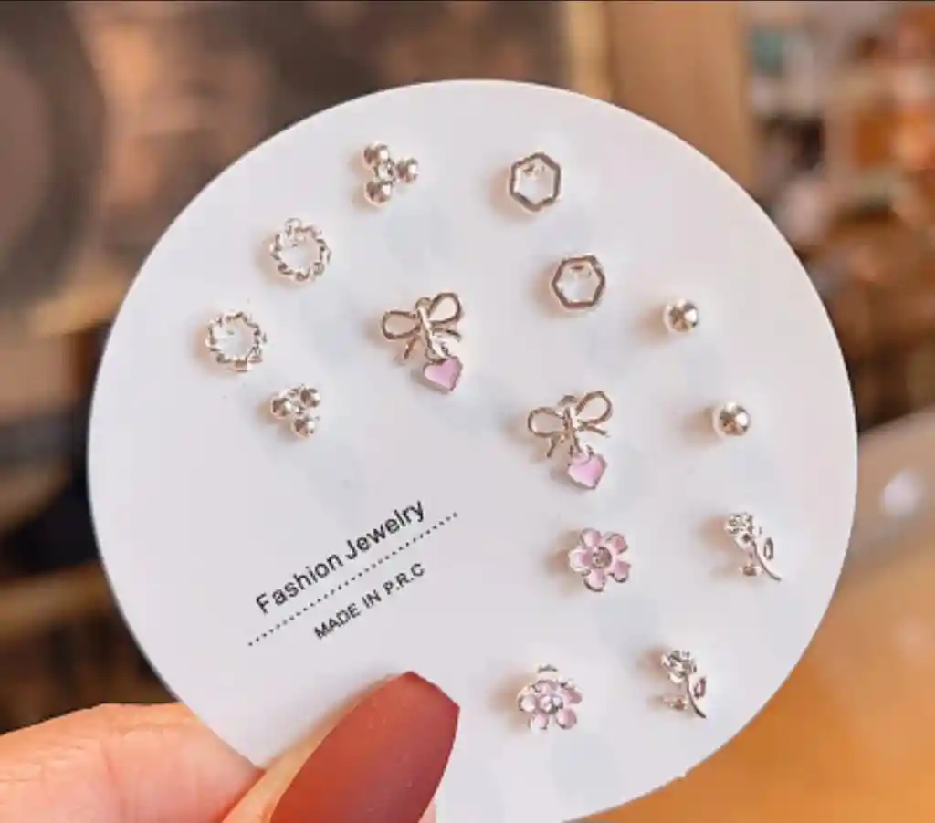 Juego de 14 Pendientes Elegantes con Elementos de Estrella de Mar, Copo de Nieve y Corazón en Circonita Sintética Adecuados para Uso Diario y Regalar a Amigos