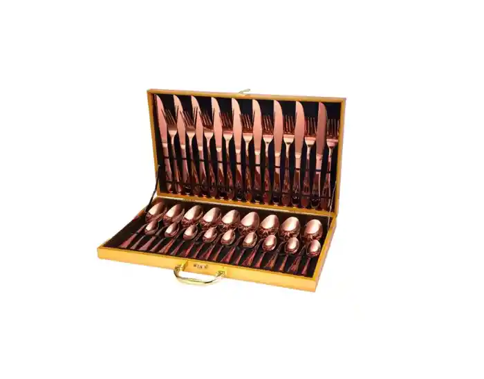 Elegancia en la mesa Con este set de cubiertos puedes cubrir hasta 9 puestos, Incluye cucharas grandes, cucharas de té, tenedores y cuchillos, todos fabricados en acero inoxidable. CARACTERÍSTICAS: - En acero inoxidable - Elegante acabado liso fácil de limpiar - Lavable en lavavajillas TE ENTREGAMOS: 9-Cucharas soperas 9-Cucharas té 9-Tenedores 9-Cuchillos 1-Estuche de lujo