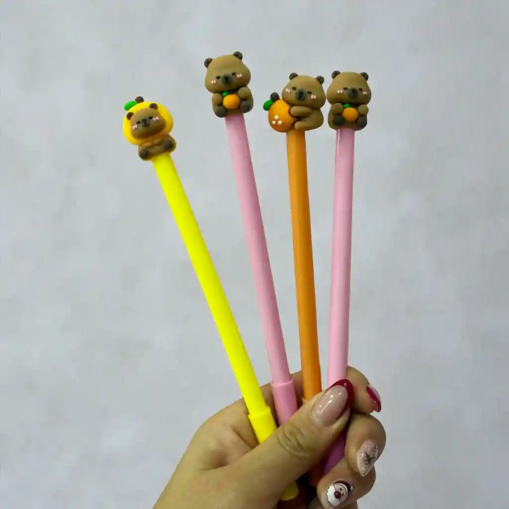 Set de 4 micropuntas con tinta negra, motivo de Capibara. Nada como escribir con unos micro puntas tan lindos y tiernos.