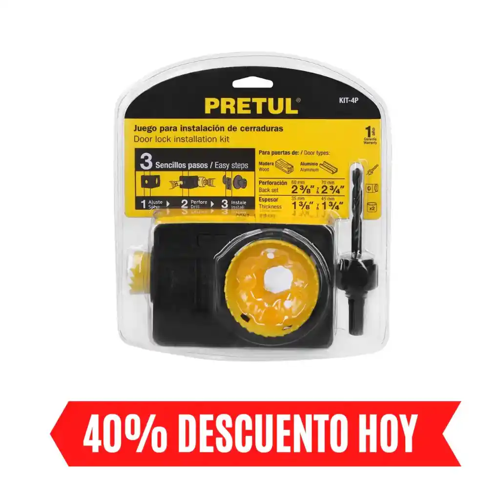 Brocasierras de acero al carbono DISTANCIA DE PERFORACION:2 3/8" - 2 3/4" PARA PUERTA CON GROSOR:1 3/8" - 1 3/4" EMPACA INDIVIDUAL:bolsa