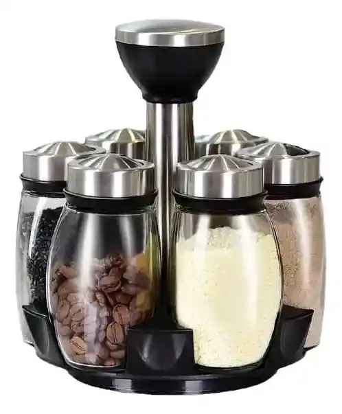 Incluye 7 piezas (6 frascos y 1 base). Fabricado con una combinación de acero inoxidable y vidrio sin plomo. Cuenta con una base giratoria de 360 grados para un fácil acceso. Diseñado para ahorrar espacio y mantener las especias organizadas en la encimera. Composición del set: Incluye 6 frascos para especias y una base o soporte giratorio. Materiales: Los frascos son de vidrio transparente, lo que permite una fácil visualización del contenido, y las tapas y la estructura son de acero inoxidable. Funcionalidad: La base giratoria de 360° facilita el acceso y la selección de las especias de manera cómoda y organizada, ahorrando espacio en la encimera de la cocina. Diseño de las tapas: Cada frasco cuenta con tapas que tienen diferentes tipos de orificios ajustables para dosificar las especias según sea necesario. Organización: Ayuda a mantener los condimentos frescos y ordenados, con un aspecto moderno y elegante adecuado para cualquier cocina.