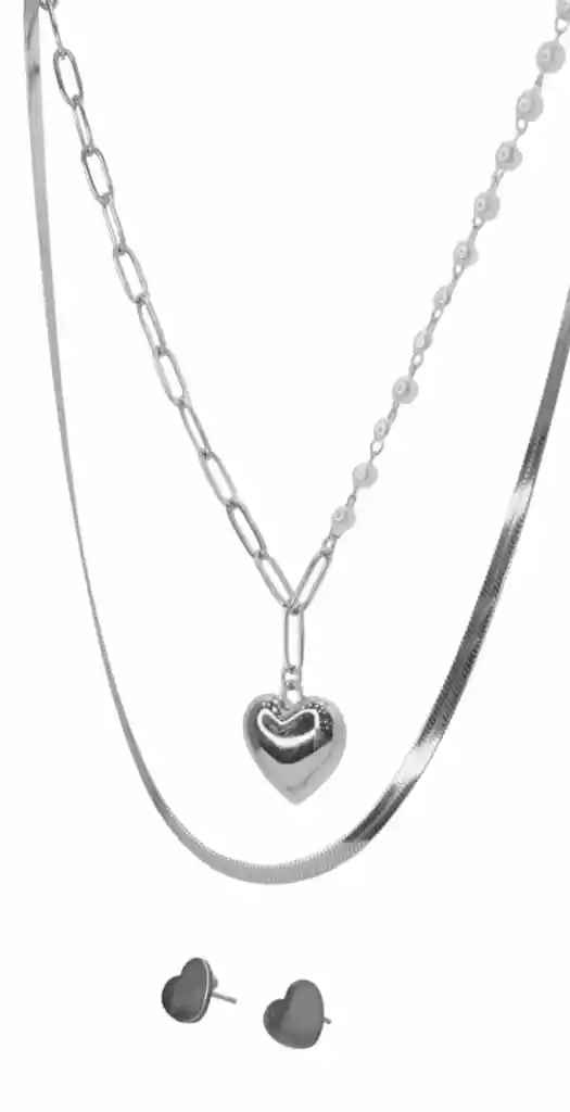 Este juego es ideal para cualquier día, es sutil y son accesorios realizados en acero quirúrgico por lo que no cambian de color y además son antialérgicos. Color: Plateado
