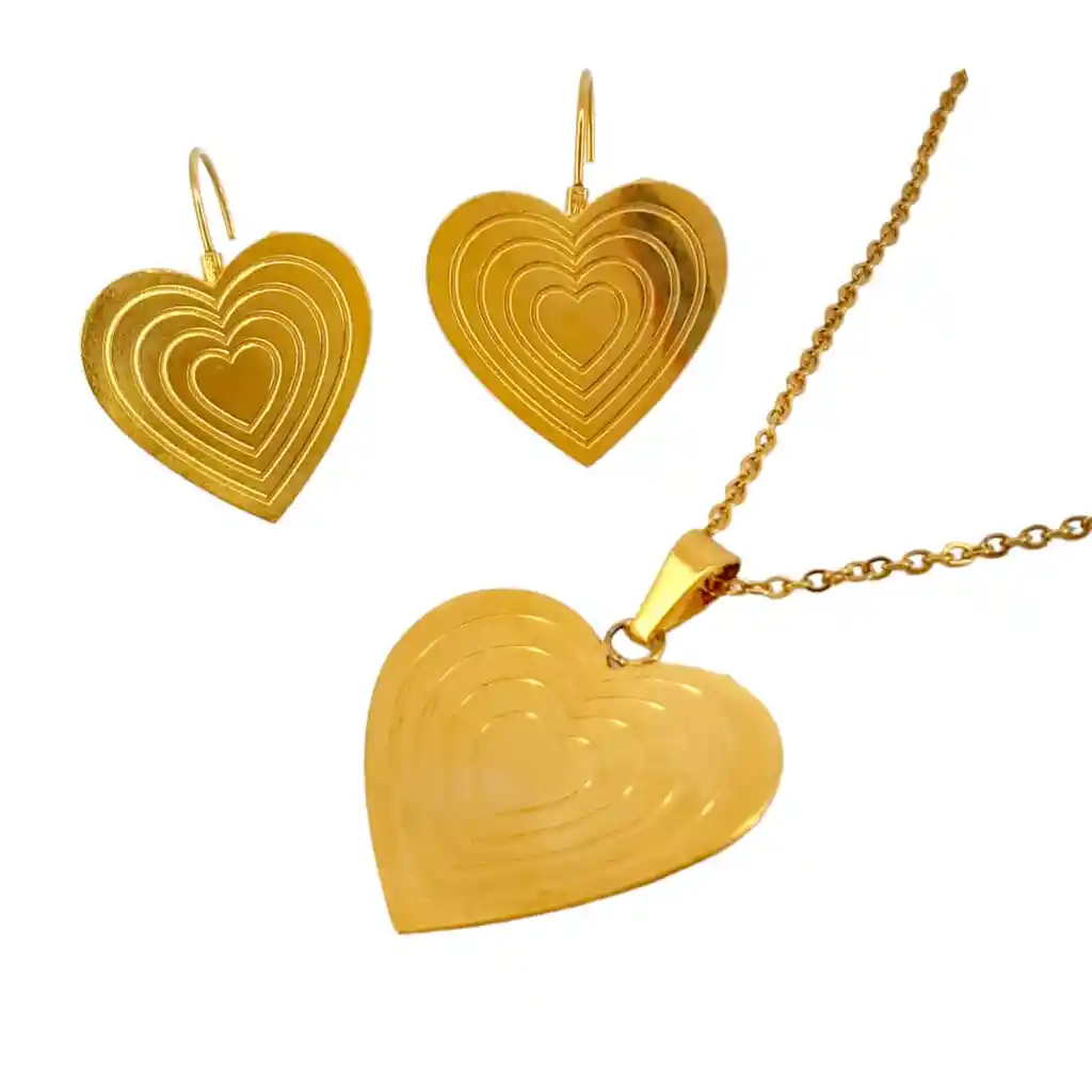 Presentación: Arete Tipo Candonga Material: Acero Quirúrgico Color: Dorado Diseño: Corazón Dorado Labrada Producto Hipoalergénico. Cadena de 40 cm Caracteristicas: Es un material que no se oxida, no se oscurece con el tiempo, su tonalidad y brillo no se alteran. Es Antialérgico, la cantidad de níquel que tiene es residual por lo que en rarisimas ocasiones causa alergias. No necesita mantenimiento. Es un material duro, 1000 veces más duro que el platino y no se deforma.