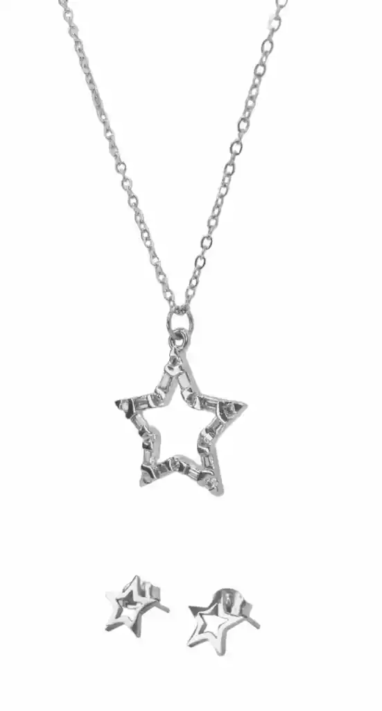 Juego De Aretes Y Collar En Acero Diseño Silueta De Estrella