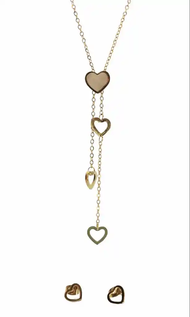 Juego De Aretes Y Collar En Acero Diseño Corazón Esmaltado Y Siluetas De Corazones