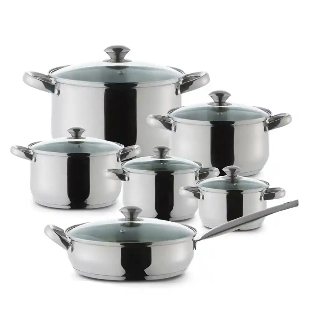BATERIA ILKO PRIME 12 PZS ACERO INOXIDABLE. La línea Prime de acero inoxidable a través de diversos formatos ayudará a brindar soluciones transversales a su día a día en la cocina, con piezas duraderas por su materialidad, con excelentes terminaciones pulidas y funcionales, sus mangos y asas son remachadas. Con su base encapsulada ayudará a mantener el calor y a distribuirlo de forma rápida, lo que permitirá una excelente cocción. · Este juego de ollas contiene: - Ollas de 16cm, 18cm, 20cm, 22cm y 24cm con tapa y sartén de 24cm con tapa. - Línea de acero inoxidable con acabado brillante. - Base encapsulada de 3,3mm de espesor compuesta de aluminio, hierro y acero 430. - Permite la distribución del calor de forma rápida y homogénea, además de retenerlo. - Asas, mangos y pomos de acero inoxidable. - Tapas de vidrio templado con válvula liberadora de vapor. NOTA: Lavar antes del primer uso. Evitar calentar sin contenido en su interior. Lavar cuidadosamente luego de cada uso. Secar de inmediato luego de lavar. La garantía es directamente con la marca ILKO, leer atentamente el manual de instrucción antes de ser usadas, eso ayudara a darle un uso adecuado a las ollas.