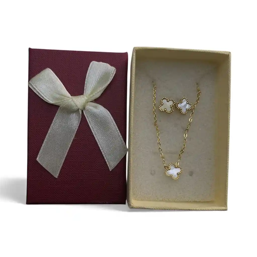 Juego De Cadena, Dije Y Aretes Diseño De Trebol Color Blanco